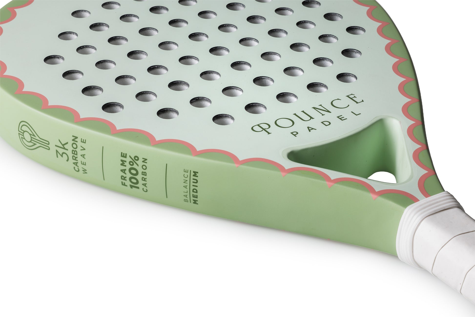 At 350g, this lightweight women’s padel racket combines a 100% carbon frame, 3K carbon surface, and teardrop shape to deliver the perfect blend of control and comfort.